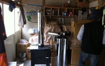 After sending 20 cook-stoves to Japan to help with the relief effort, ESSE was pleased to receive the following photos: showing our Japanese distributor hard at work installing the stoves and flues in some of the most badly affected areas of the country following the earthquake and tsunami.